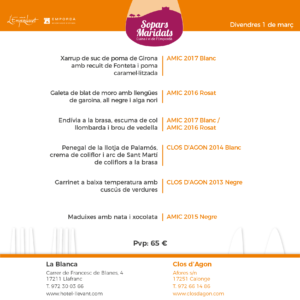 Fes servir els hashtags a les teves publicacions i compartirem la teva experiència! Aquí el menú proposat: menulablancaclosdagon